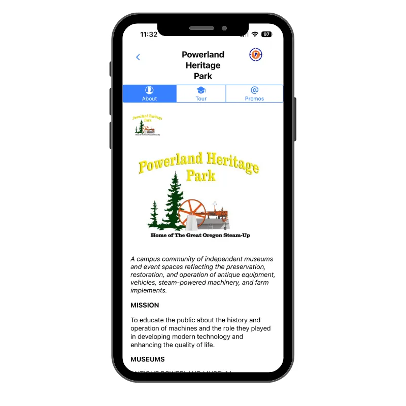 “EVE has increased the knowledge of our museums to our visitors, and I don’t have to rely so much on volunteer staffing. The biggest benefit of the app has been more exposure for our visitors to learn about our 14 museums through a self-guided tour and participants enjoy using the application. As president I feel better that our visitors are getting a much better experience for the price of admission.”